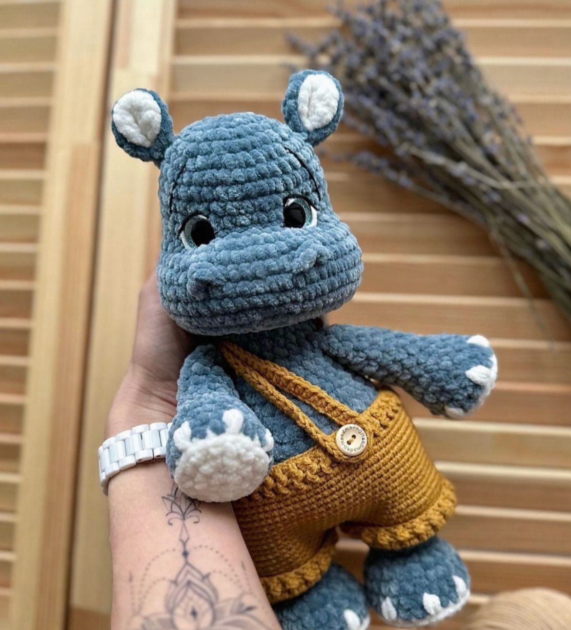 Un set de crochet plein de tendresse comprenant un hippopotame, un rhinocéros et un éléphant 🦛🦏🐘 – chacun avec ses vêtements et petits accessoires qui leur donnent un charme unique.